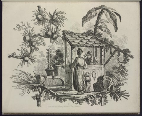 Femme et son enfant devant un kiosque (Chinoiseries, scènes de la vie conjugale) - Pillement