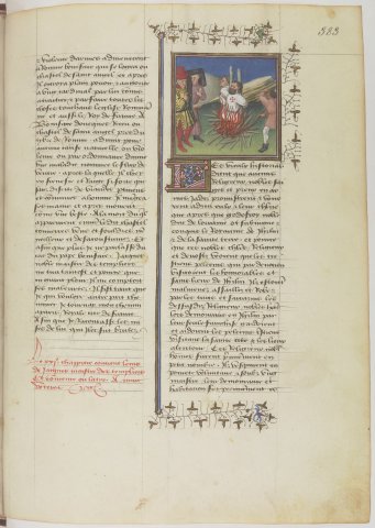 Supplice des templiers, Jacques de Molay et Geoffroy de Charnay (Boccace, De casibus, Fr229, f383r)