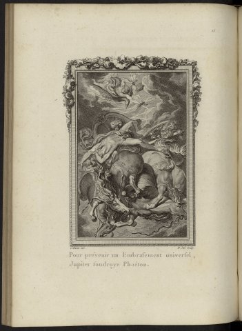 Légende sous la signature : « Pour prévenir un Embrasement universel, Jupiter foudroye Phaéton. »