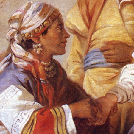 « En Russie il y a une grande variété de ces sortes de gens Originaires de Boheme ils errent sans cesse par caravanne, elevent leurs Enfans selon la simple nature les frottent souvent d’huile et les exposent en suite au Soleil. Ils vivent comme ailleurs de la Credulité et de la folle Curiosité des gens simples et font aussi leur plus sérieuse Occupation de voler tout ce qu’ils peuvent. La fille qui se fait dire la bonne Avanture est habillée a la maniere des Votiacks peuple de Sibérie. »