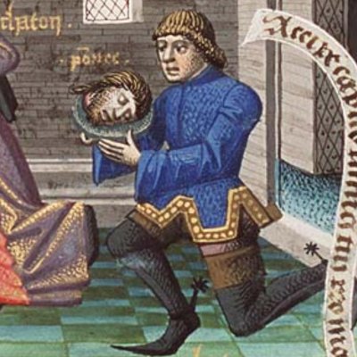 La mort de Pompée. Sa tête présentée à César (Cité de Dieu, MMW10A11, F28v)