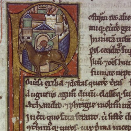 Le cheval de Troie, P historié du livre 3 de l'Énéide (Virgile, Bnf Latin 7936, f28v) Voir la série