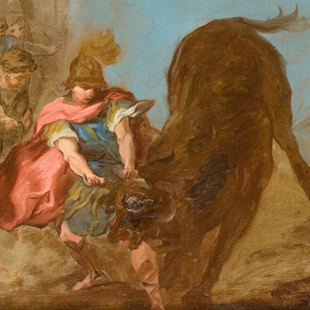 Thésée vainqueur du taureau de Marathon (Boccace, De casibus, Bnf Fr226, f7r) - Maître de Rohan Voir la série
