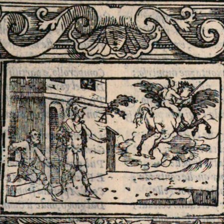 ORLANDO FVRIOSO | DI M. LODOVICO ARIOSTO | TVTTO DI NOVO CON FIGVRE ADORNATO, | E RIVEDUTO CON OGNI DILIGENZA. | con nuova giunta di Annotationi a ciascun Canto con gli Argo- | menti in Stanze di M. LIVIO CORALDO. | E CON I CINQVE CANTI CHE | NEGLI ALTRI NON ERANO. | [Vignette frontispice] | IN VENETIA M D LXIIII.
