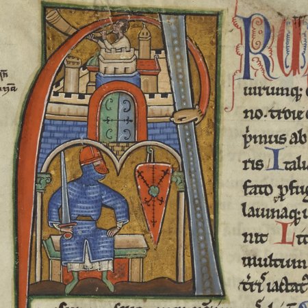 P. Virgilius Maro, Opera omnia. Papinius Statius, Thebaidos libri duodecim. M. Annaeus Lucanus, De bello civili libri decem. Claudianus, Poematum libri quatuordecim. Virgilii opera supposititia. Glossae super Moretum, quod carmen Virgilio tribuitur – Manuscrit du 14e siècle, produit à Paris.